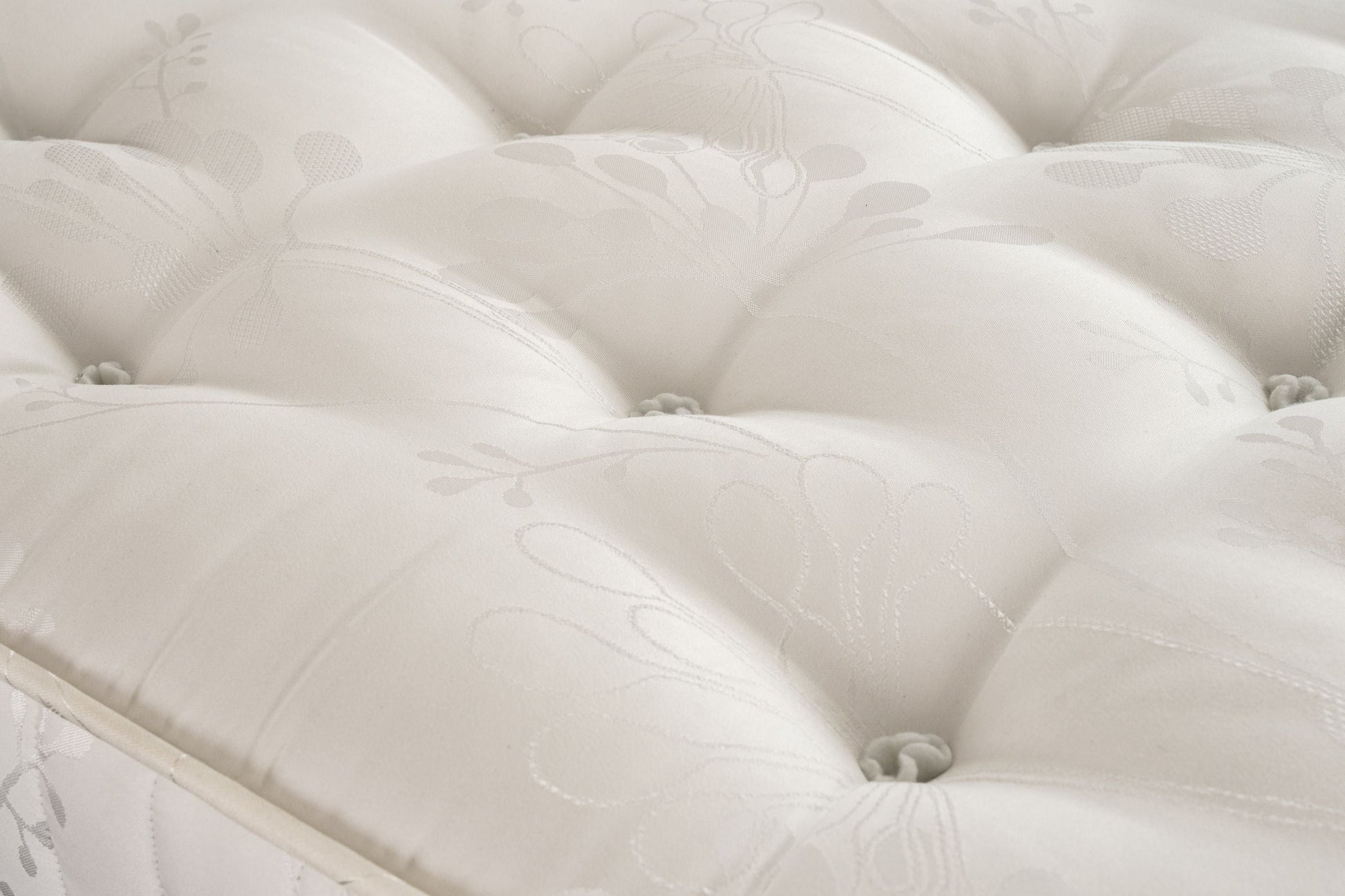 A luxury, double sided pocket spring mattress with hand tufted damask cover