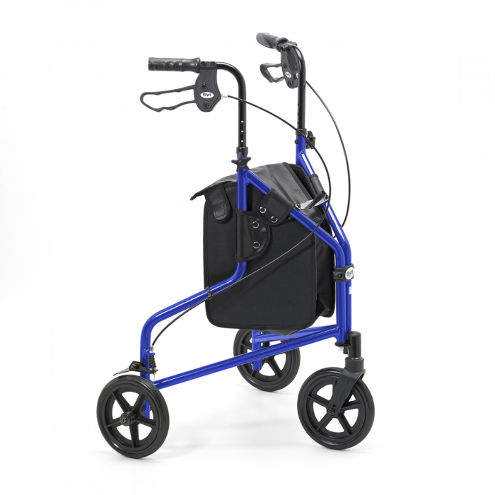 This extremely Lightweight Aluminium Tri Wheel Walker is a very lightweight aluminium rollator, finished in a blue colour and supplied complete with a handy removable storage bag. The lightweight aluminium walker has comfortable ergonomic hand grips and is fitted with easy to operate loop handled cable brakes that give excellent stopping ability, and can be locked in place for extra security, ensuring the user is always in total control and improving confidence in use. This three wheeled rollator also has height adjustable handles, that are very easy to adjust, allowing the user to alter the height of the handles to the most comfortable possible position. The extremely lightweight nature of the Tri Wheel Walker and its foldable design, makes it incredibly easy to control when in use and very easy to transport and store when not required. The Lightweight Aluminium Tri Wheel Walker is supplied with a handy Velcro carry bag that is ideal for transporting small objects around or ensuring those essential items are always readily at hand. With its high gloss blue finish and all its other features, this modern looking, extremely lightweight and stylish three wheeled rollator is an excellent mobility aid suitable for everyday use.